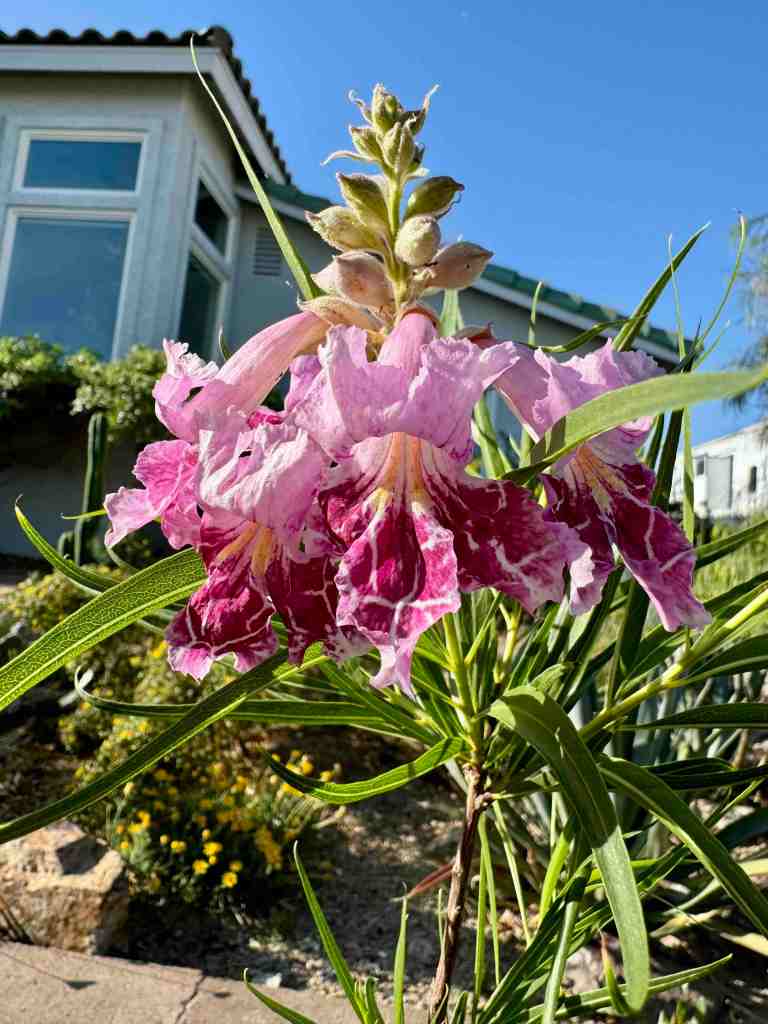Desert willows are deciduous, which means they lose their leaves. Planting this tree in a hot, west-or-south facing courtyard is a good idea. You’ll get shade in the summer, but because it loses its leaves, you’ll get bright, warm sunlight in the winter. Winter light is the desert’s gift to those who live and garden here.