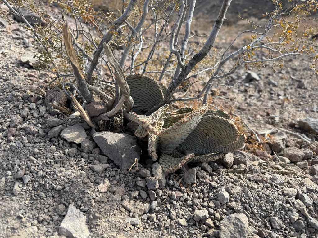 In fact, the weather has been so mild that I have continued to plant. Trees, shrubs, and perennials should be watered in thoroughly after planting. But succulent plants get no water at all, not for weeks and weeks. The days are warm, but the ground is cool and too much moisture could lead to root rot. When watering the wildflower seedlings on the west side of the house I was careful not to wet the newly planted diamond cholla (Cylindropuntia ramosissima) I planted there a few weeks ago.